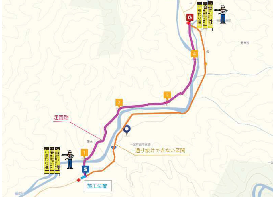 宍粟市は、「国道429号の百千家満地区における道路工事のため、4トン車以上の車両は通り抜けできません。4トン車未満の車両は迂回路を設置しますので交通誘導員の指示に従ってください。」と6月9日に発表。