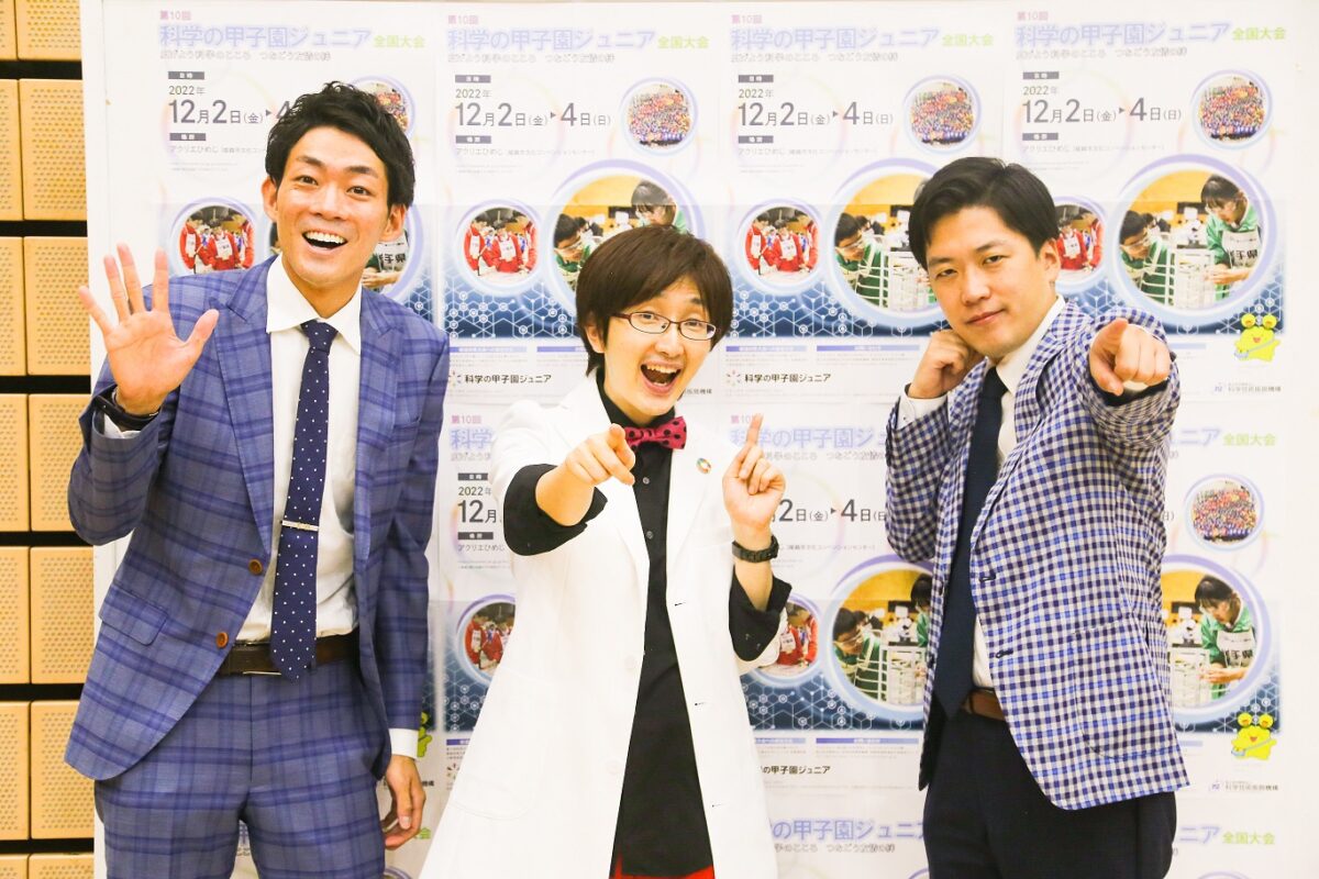 同大会に出場する兵庫県代表チーム選考会として8月19日(金)に神戸常盤アリーナ(兵庫県立文化体育館)で開催された「数学・理科甲子園ジュニア2022」に、サプライズゲストとして吉本興業所属の黒ラブ教授とネイビーズアフロの2組が登場し、全国大会を目指す生徒たちに笑いのエールを送りました。
