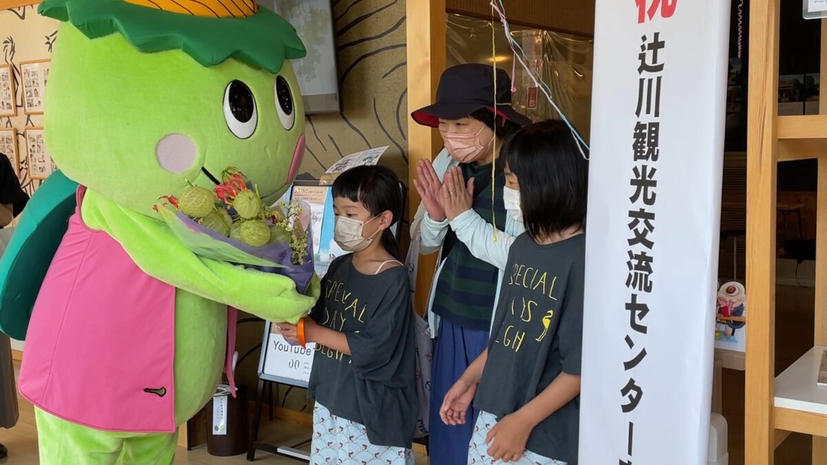 観光交流センター近くの辻川山公園を訪れた後、たまたま立ち寄った辻川観光交流センターで運よく10万人目の来館者となりました。