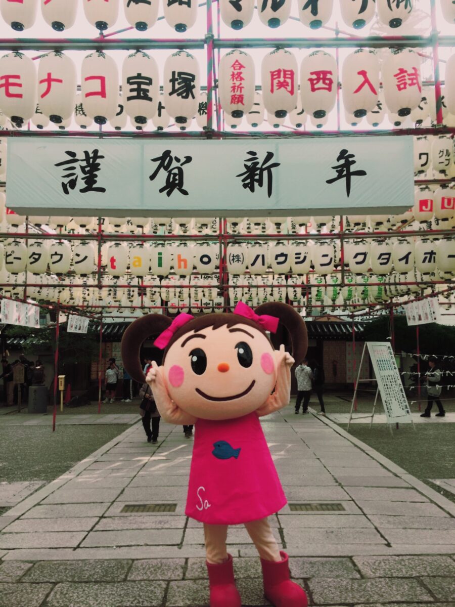 令和5年1月4日に、ヤマサ蒲鉾株式会社のキャラクターである“さっちゃん”が、播磨国総社にて初詣をします。
