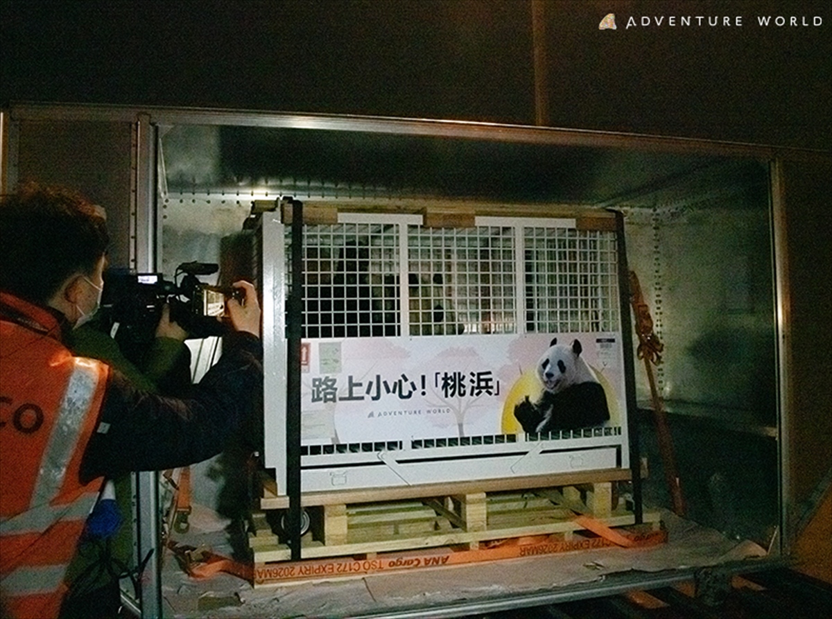アドベンチャーワールド(和歌山県白浜町)から2023年2月22日(水)に中国へと旅立ったジャイアントパンダ「永明(えいめい)」「桜浜(おうひん)」「桃浜(とうひん)」の3頭が23日、現地時間の午後11時40分に、中国四川省の成都双流国際空港に無事到着。