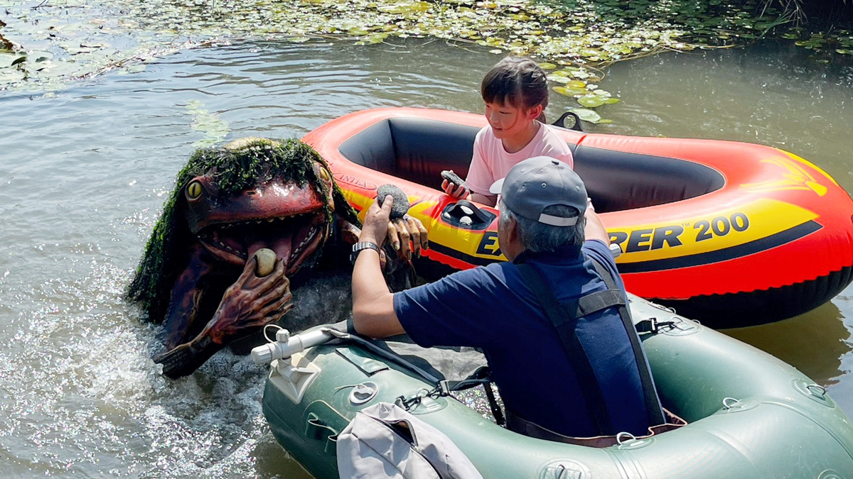 夏休み中、妖怪に関する自由研究を行い、福崎町に住みたい、というほどの福崎町愛、ガジロウ愛にあふれる原田さん。Tシャツは前面に「ガジロウ大すき」、背中に「かっぱあらいます」と描かれています。
