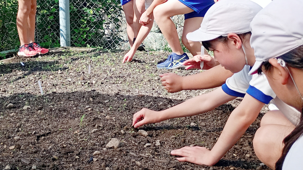 今回種まきしたヒマワリは約二ヵ月半後の9月中旬ごろに花を咲かせる予定で、夏の日差しの下、子どもたちは自身の蒔いたヒマワリが大きく育つよう願いました。