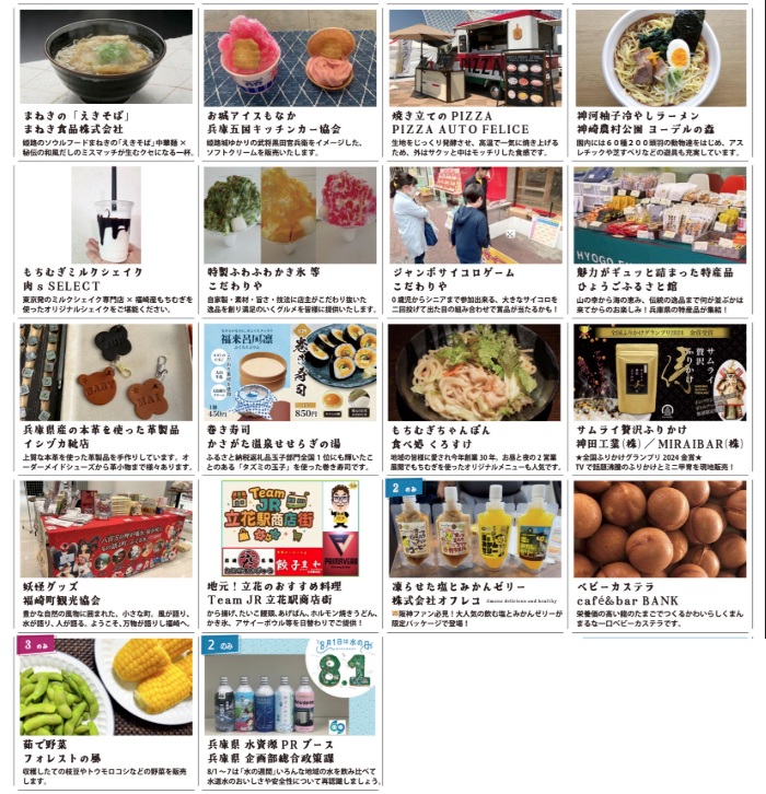 まねきの「えきそば」(姫路市)、柚子ラーメン(神河町)、妖怪グッズ(福崎町)などのお店が並び、福崎町に本社をおく企業手話ダンスチーム「チームフクシン」が手話ダンスも披露。