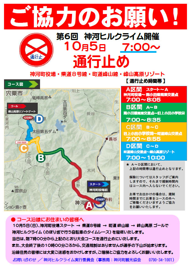 「第6回神河ヒルクライム開催に伴う通行規制のお知らせ│神河町」についての追加情報、感想などをコメントまでお寄せください。