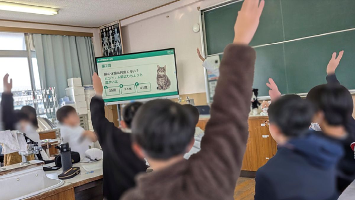 授業では、動物病院での診察や手術の流れを分かりやすく解説。さらに、子どもたちが夢中で参加した「キッズ獣医師クイズ大会」も開催されました。
