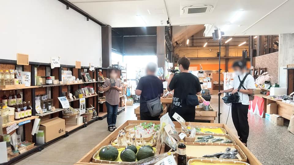 有限会社アリモトさんの特大せんべいとほのぼのせんべい、えぇもん王国さんの香醸カリーと自家製アーモンドバター、内藤繊維さんの加西てぬぐいを取材されました。