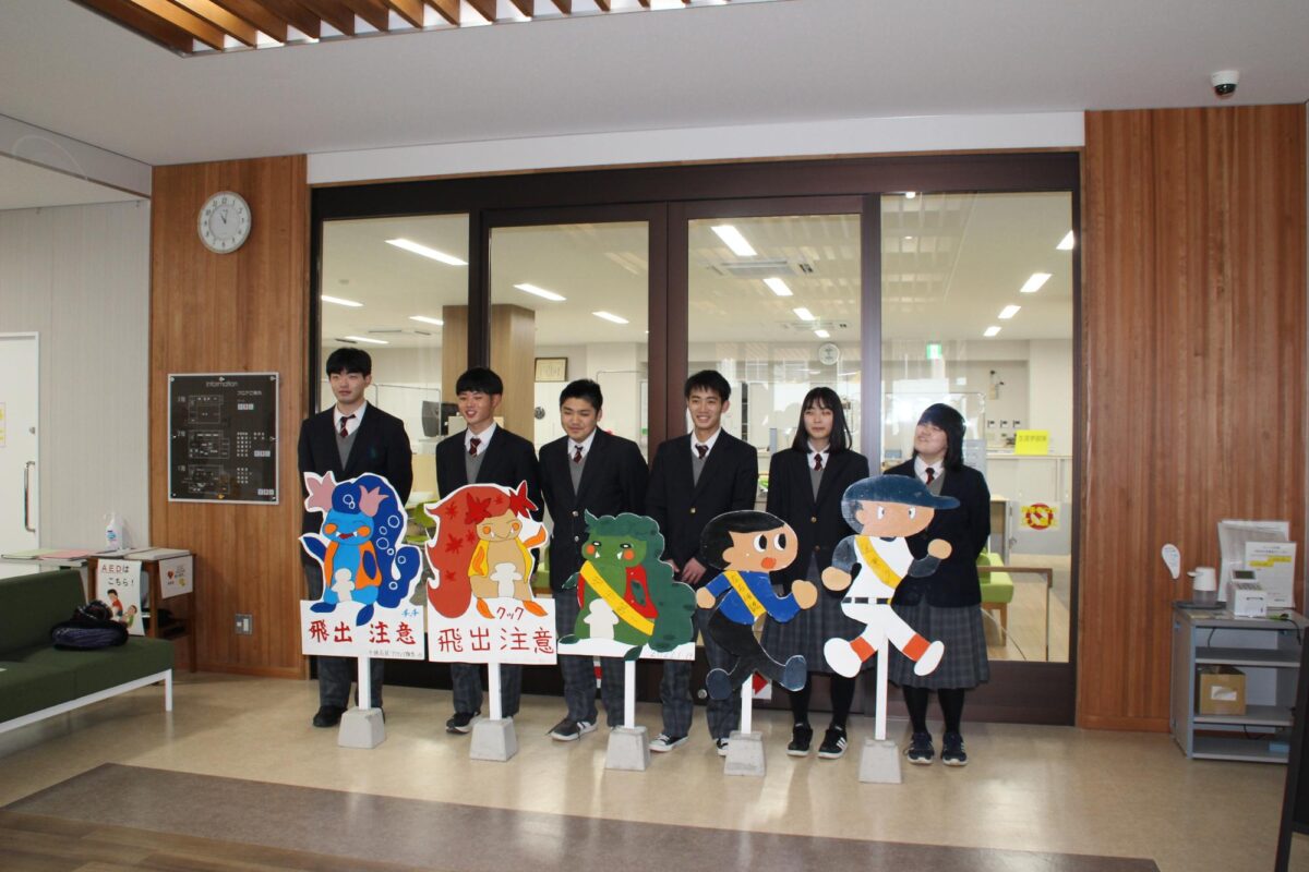 1月27日、兵庫県立千種高等学校のアクティブ類型の生徒らがライブリーちくさを訪れ、交通事故防止や安全啓発のため路地などに設置する手作りの人形型の標識「飛び出し坊や」5体を宍粟市に寄贈。