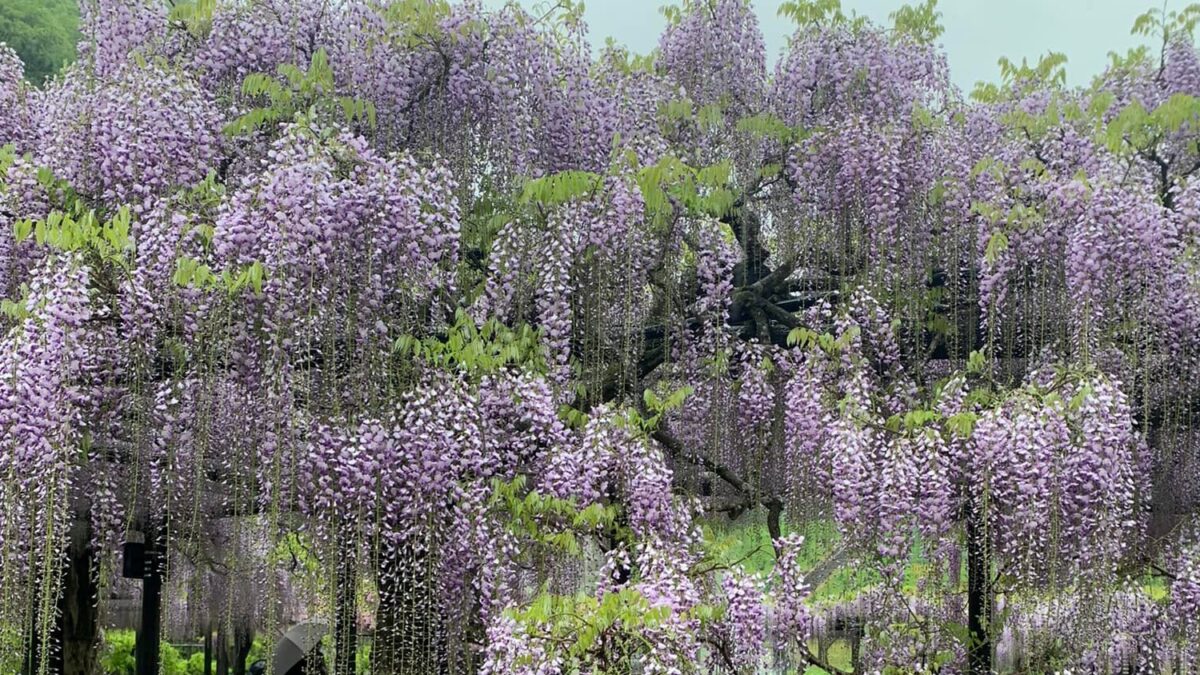 4月29日、公園面積7,000㎡、藤棚総延長500m 藤棚の幅は4mを誇る、有数の藤公園「白井大町藤公園」が雨降る中、3年ぶりに開園しました。