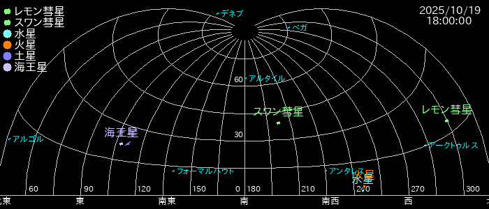 | 日付 | 時間帯(東京 | 方位と地平高度(日の入り1時間後) | 予想される明るさ |