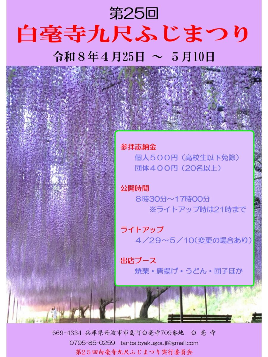 - 場所: 兵庫県丹波市市島町白毫寺709(MAP)