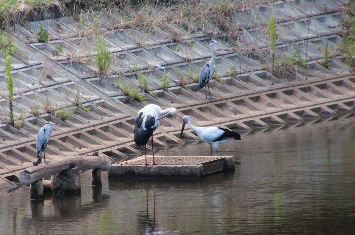 兵庫県立フラワーセンター横の池(※㈱田中化工横池)にコウノトリが2羽、8月6日飛来。