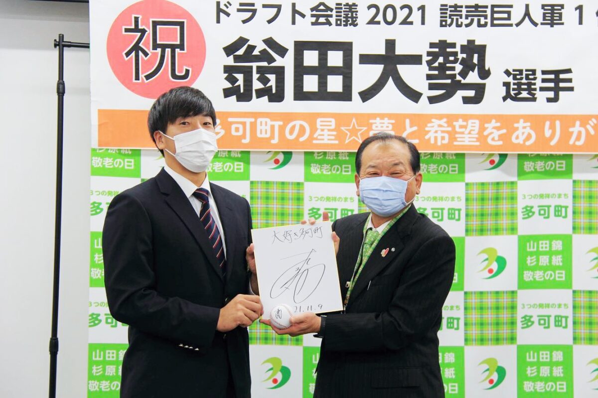 多可町からは「もう嬉しくて嬉しくて、たか坊ふう子もお出迎え!翁田選手がカッコよくてみんなキラキラの目で見惚れてました。翁田大勢選手という1人の野球選手をぜひ!!応援よろしくお願いします」とコメント。