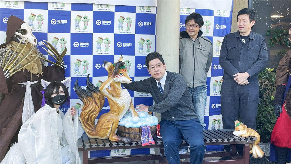 原型を担当した映画等の特殊造型に携わる福田 雅朗 氏は「(母キツネの優しさや柔らかさを出すことを意識した)自身でも挑戦的な造形、後世に残るものなので精一杯作らせていただきました。これからも妖怪で盛り上がってほしい」と話しました。
