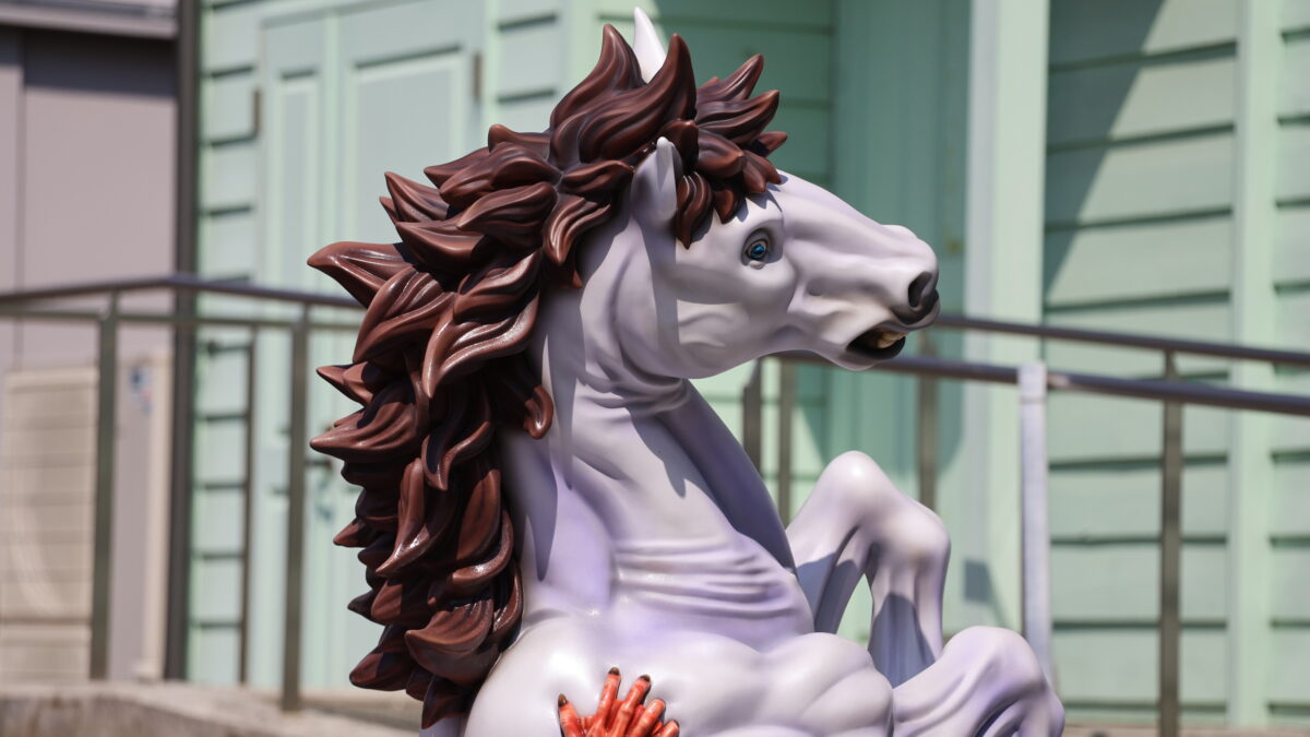 守屋徹志氏は「回を重ねるごとに依頼のハードルが上がっている」と苦笑しつつも、「今回はもはや芸術的な作品。馬の体についた水滴の表現など、細かな質感まで見てほしい」と、3ヶ月の制作期間をかけた自信をのぞかせました。