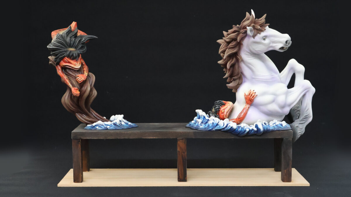 妖怪ベンチ「河童駒引」の原型