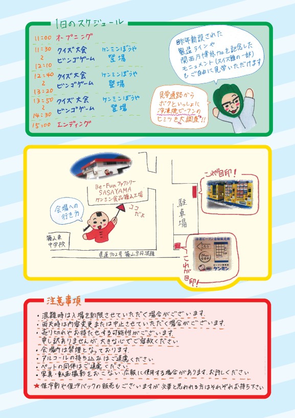 会場ではクイズ大会やビンゴ大会、さらには工場直送の「訳あり品」お買い得販売も行われ、両手にお土産を抱えた方々の笑顔があふれた模様。