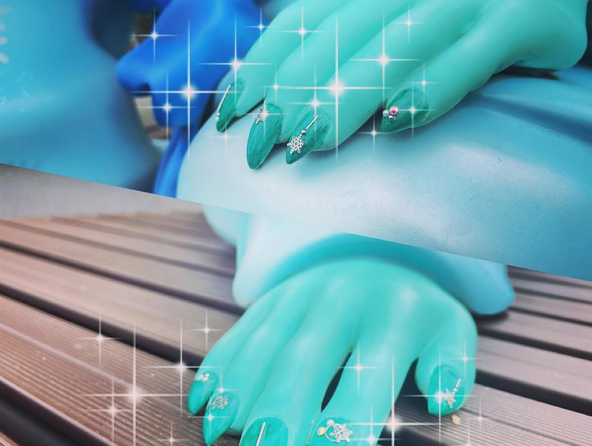 福崎町観光協会によると「スタッフのお姉さんがネイル」を施したというもので「雪女」さんの両手にキラリ輝くストーン。