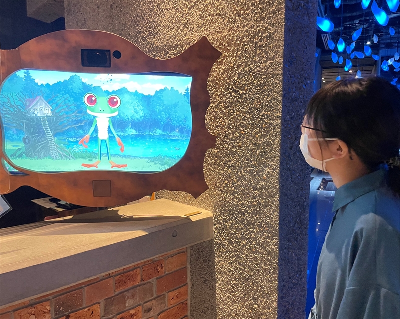 館内には「ATOA Chatter(アトアチャッター)」と呼ばれる生きものスタッフ『アカメアマガエルのアンドレス』『ミドリフグのティアラ』『アンモナイトのアンモーン』『二ホンカワウソのお景(きょう)』がお出迎え。館内のおすすめポイントなどを案内しています。