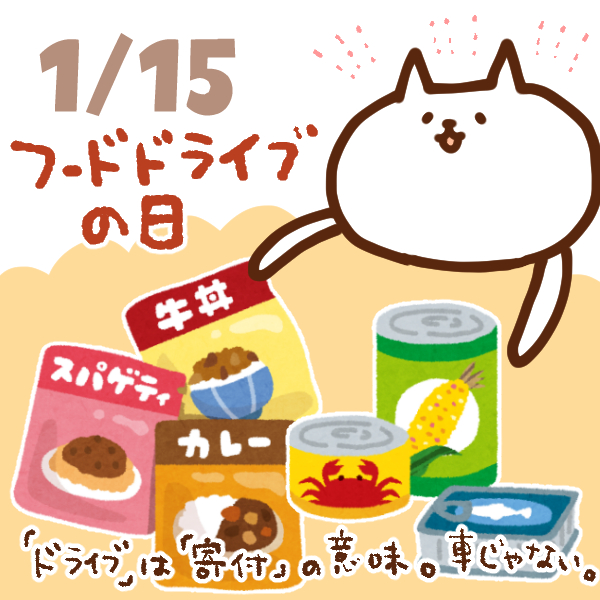 「【今日はなんの日】1月15日|フードドライブの日」についての追加情報、感想などをコメントまでお寄せください。